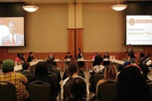 The president also shared insights from a monthly meeting with Vice Chancellor Mary Beth Daisey, clarifying questions raised during a recent town hall. In other news, Debbie Shiers was introduced as the new Director of Residence Life, and an open position for an executive senator was announced for students interested in leadership roles within the SGA.